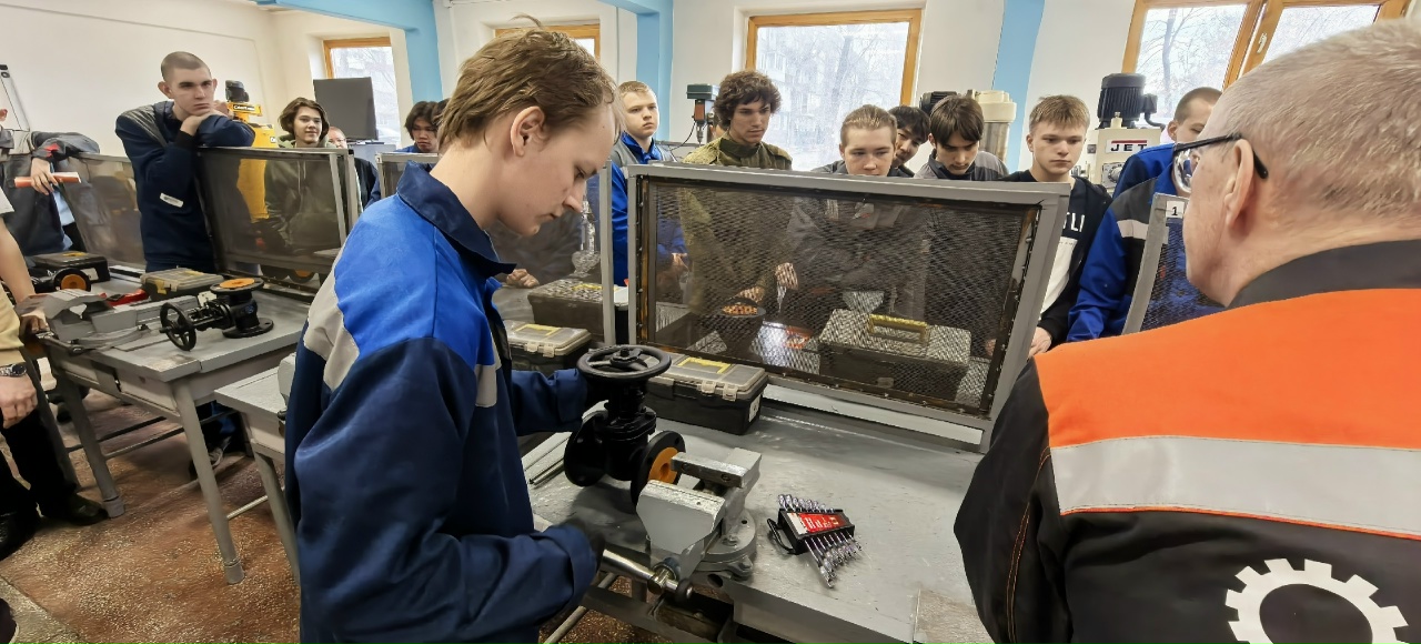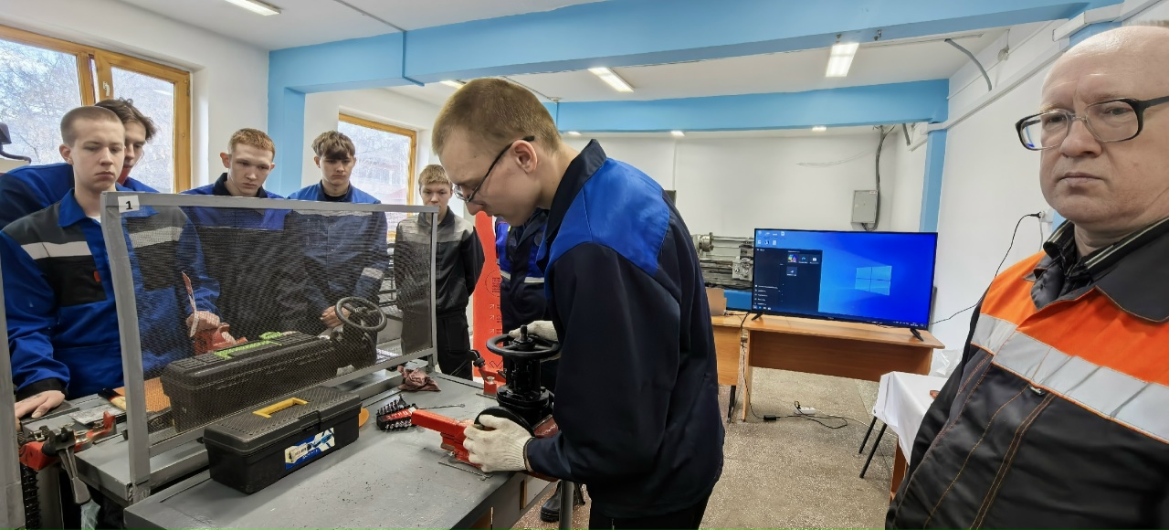 Также студенты 4 курса группы ТТ-41 приняли участие в практическом занятии по обслуживанию запорной арматуры. Мастер производства Котов Виталий Викторович продемонстрировал основные этапы работы, подробно отвечал на вопросы и объяснял нюансы эксплуатации оборудования.