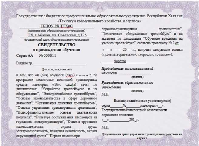 Учебный план подготовки водителей троллейбусов
